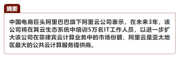 阿里云将拓展菲律宾市场 将为菲培训5万名IT人才